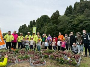 5月に植えた苗、紅はるか を収穫しました。天候が心配されましたが、何とか晴れ間を捉えて作業することができました。園児らの元気な声を聞きながら充実したアクティビティになりました。 収穫したサツマイモは、施設で利用して頂きたいと思います。